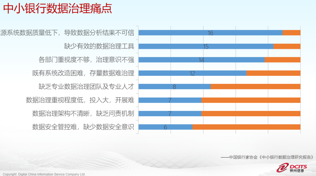 EVO视讯官网信息基于丰富的实战经验,对中小银行开展阶段、数据治理痛点等方面的深入分析,相比于规模和实力均处于领先地位的大型银行,中小银行的数据特征方面与大行相比存在的天然不同和挑战: