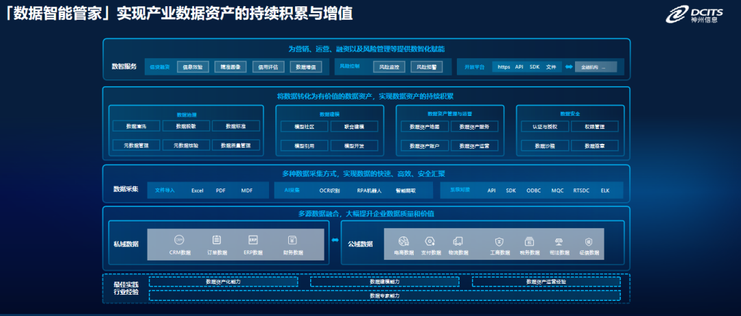 「数据智能管家」主要实现产业数据资产的持续积累与增值。依托数据专家在国际领先的数据治理能力、数据建模能力、数据资产化及运营能力以及在产业和金融组织的实践,EVO视讯官网形成了最佳的行业实践经验。